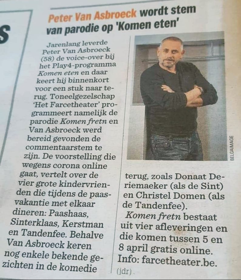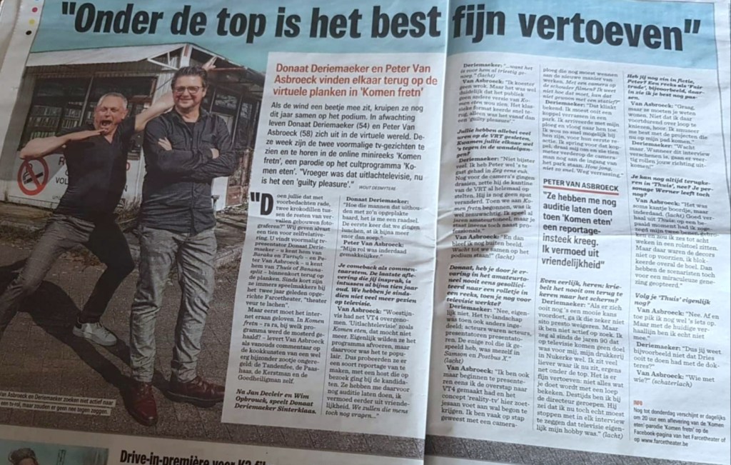 - INTERVIEW – Gents theatergezelschap brengt parodie op ‘Komen Eten’ met een terugkeer van Peter Van Asbroeck als commentator