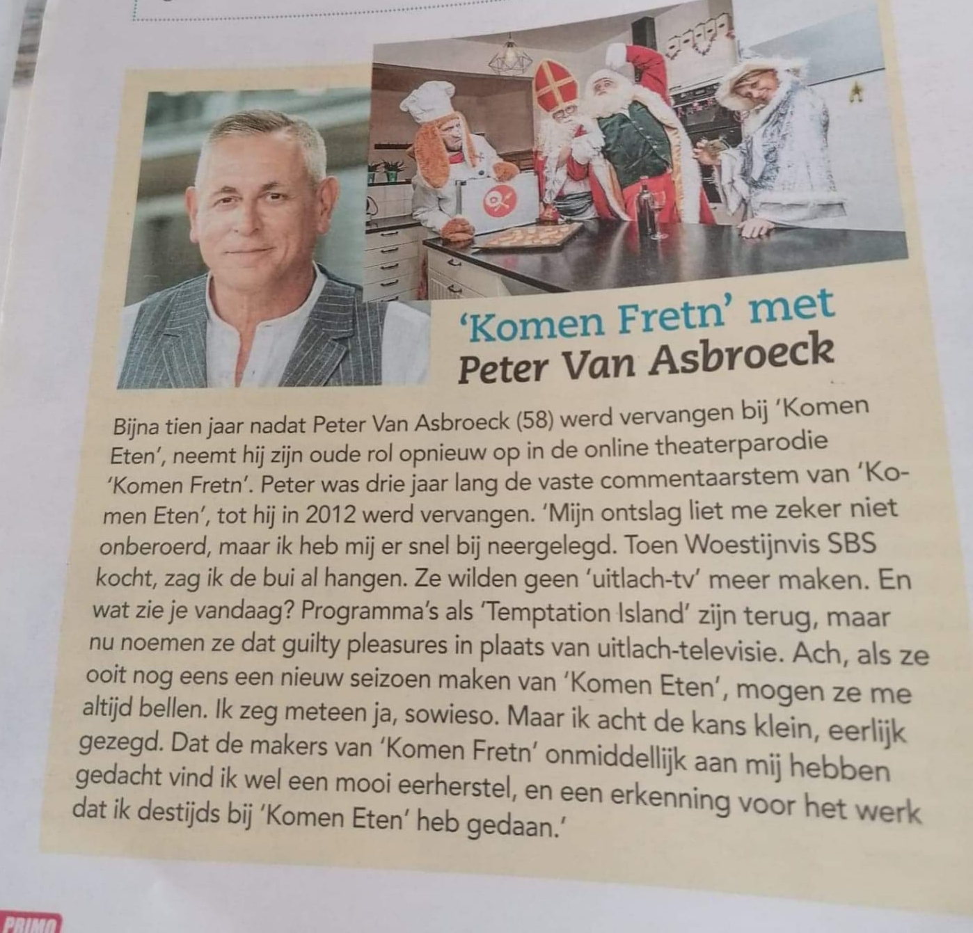 - ARTIKEL – Peter Van Asbroeck keert terug als commentator in parodie op ‘Komen Eten’