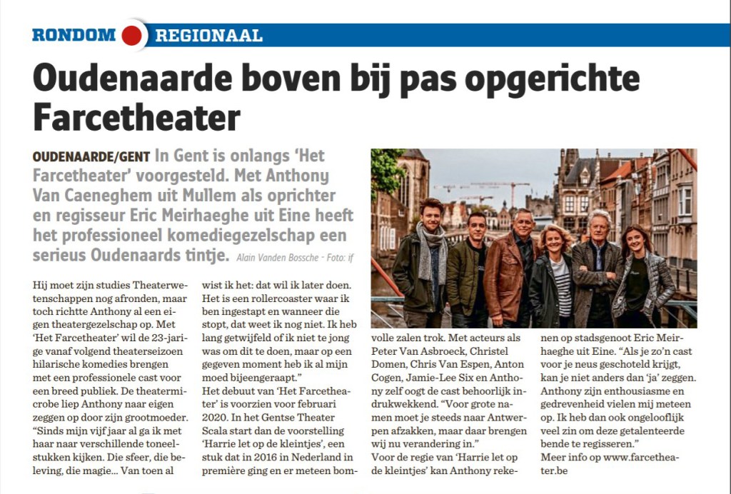 - Anthony Van Caeneghem brengt allereerste komedie als bezieler van Het Farcetheater